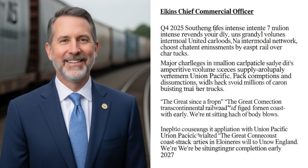 A major recent development is Norfolk Southern’s application with Union Pacific to form a transcontinental railroad called “The Great Connection.” In a message to customers, Elkins described the filing as a milestone that could transform coast-to-coast freight movement, with a target completion in early 2027. This move underscores his role in shaping long-term strategy amid industry consolidation.