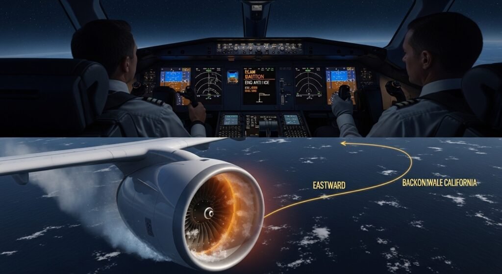 The flight was diverted due to a warning in the aircraft’s engine anti-ice system, ensuring passenger safety over the Pacific.