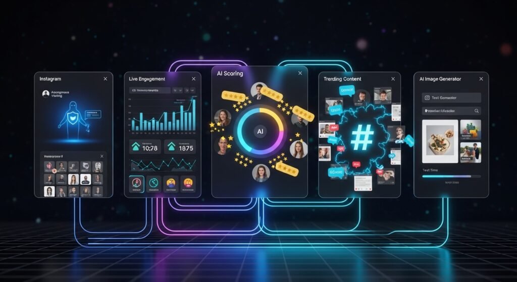 1. Instagram Analytics — Users can enter any public Instagram username and instantly retrieve data such as follower growth trends, engagement rates, average likes and comments, post frequency, and hashtag performance.