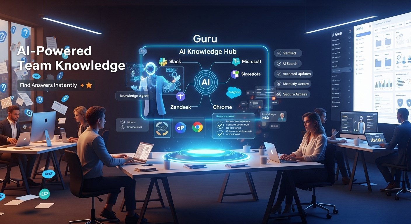 Guru is an AI-powered knowledge management platform that centralizes company information and delivers verified answers directly within tools like Slack, Teams, and browsers.