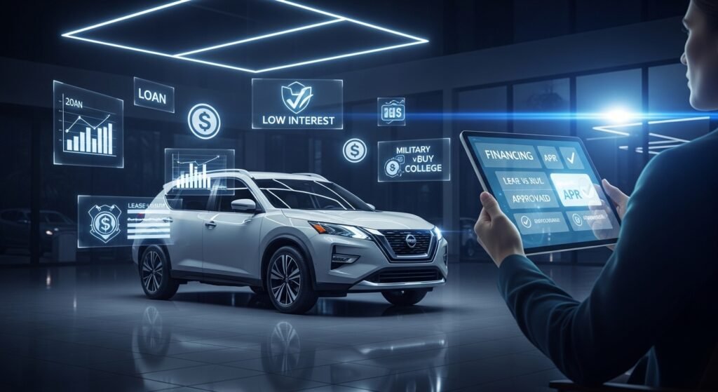 Special programs include low or 0% APR deals for well-qualified buyers, military discounts, college graduate savings, and help for drivers with mobility needs. A handy payment calculator on the Nissan USA website lets you estimate monthly costs before you visit a dealer.